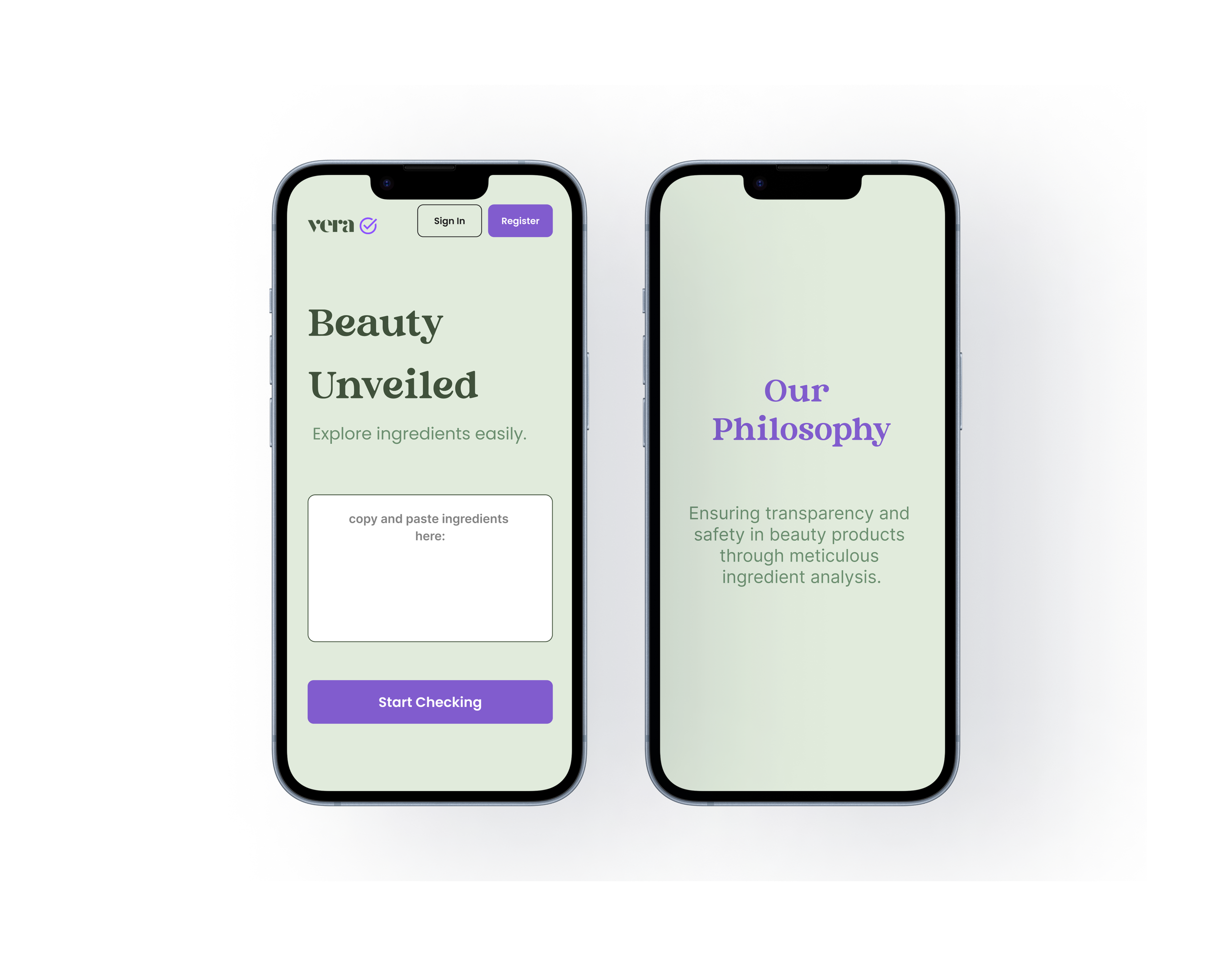 During this project phase, I reviewed various apps and websites for analyzing cosmetics. I found that while some apps come close, none of them have everything needed. Unfortunately, the ones that come close have a poorly designed interface that is not user-friendly. In designing Vera, I aim to create a user interface that is fast and easy to use, so that users don't have to deal with an overwhelming amount of messy information.